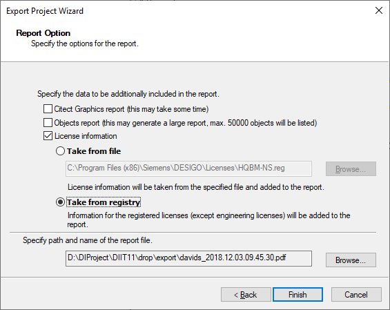 - Geben Sie den Pfad und den Namen der Berichtsdatei ein: