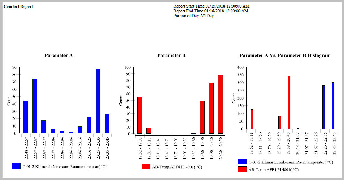 Dieser Bericht zeigt die Betriebsdaten und Zusammenfassungen für einen bestimmten Bereich oder Raum an.