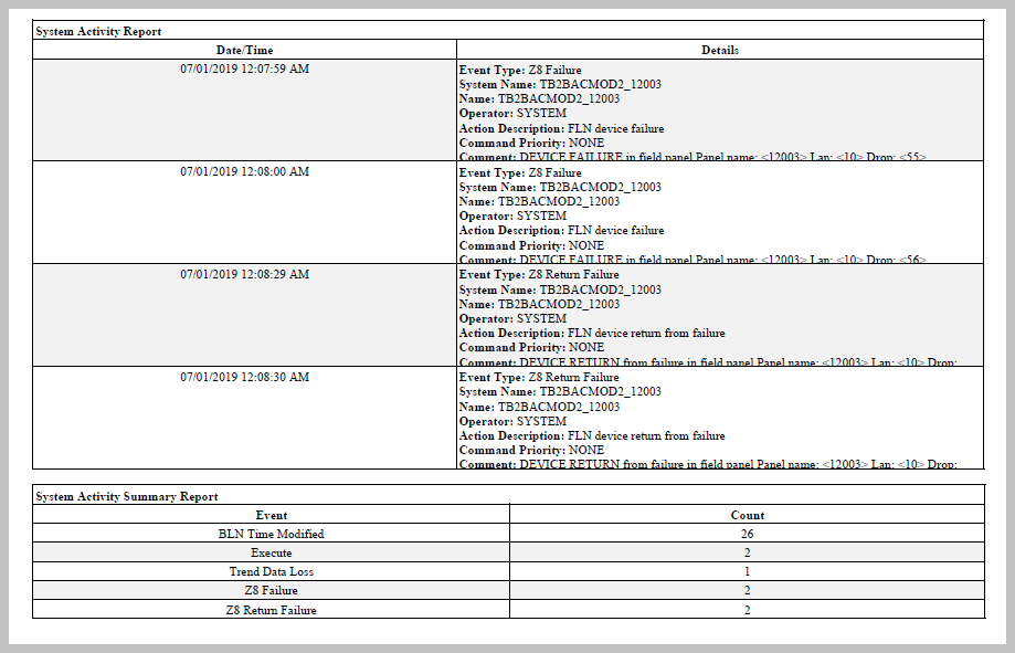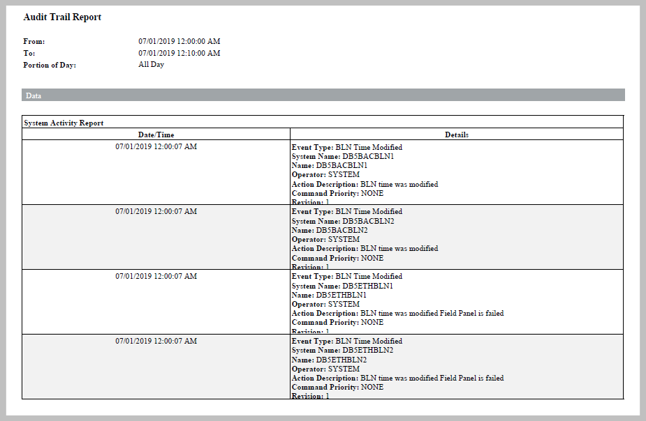 Dieser Bericht zeigt die Audit-Trail-Aktivitäten.