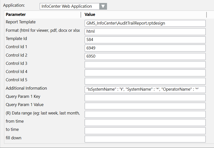 Die Vorlagen- und Steuerungs-IDs sind nicht die gleichen für alle Berichte. Die Werte variieren abhängig vom Benutzer und von den Details der Berichte in der InfoCenter-Datenbank.