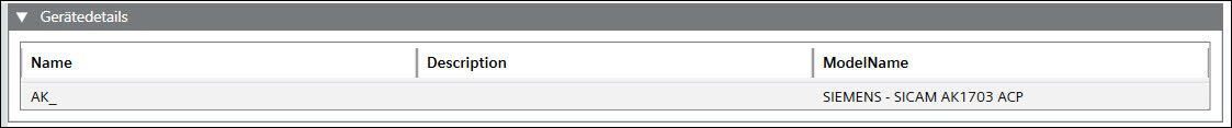 Im Expander Gerätedetails werden bei Auswahl der Datei per Voreinstellung Name, Beschreibung und Modellname angezeigt.