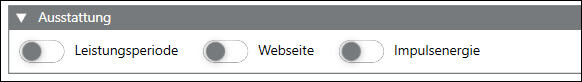 Mit dem Expander Features können Sie Leistungsperiode, Webseite und Impulsenergie konfigurieren. Aktivieren Sie dazu das Optionsfeld.