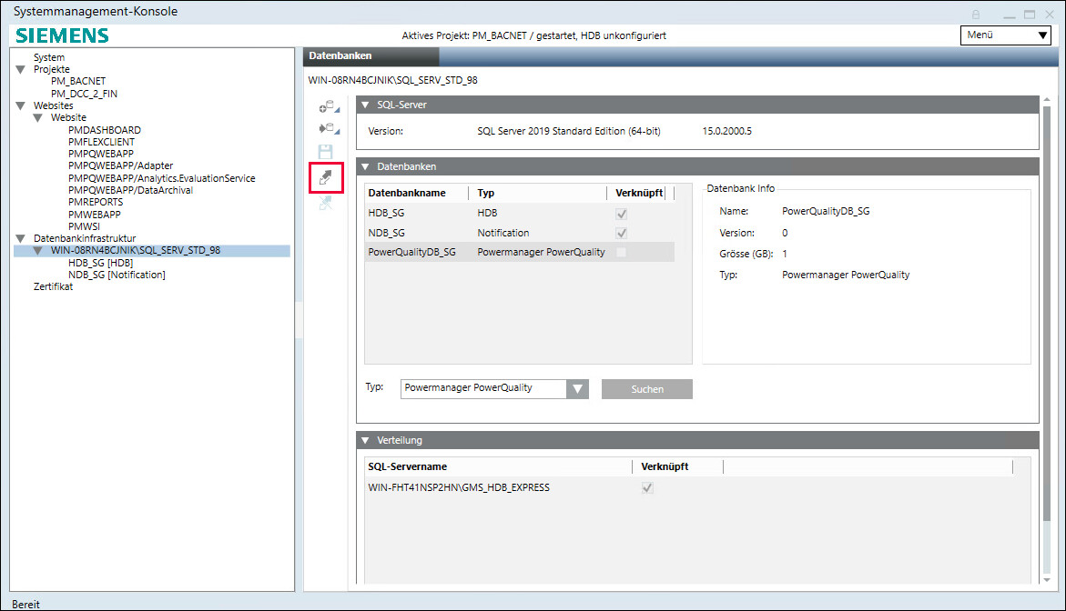 1. Die PowerQuality-Datenbank ist mit dem Projekt verknüpft.